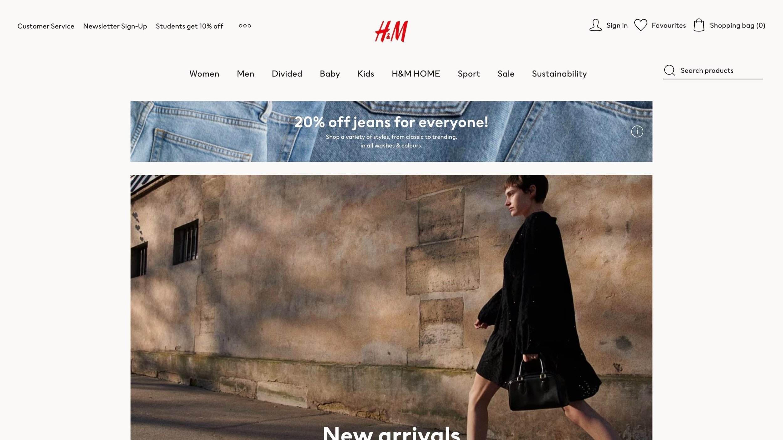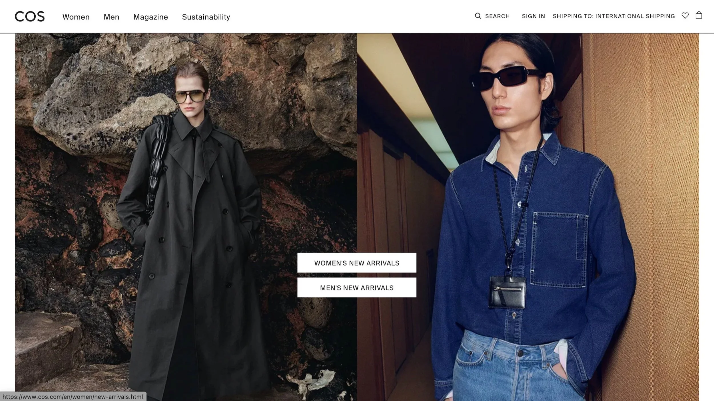 A common trend that I observed is that the higher price points brands such as COS or Acne Studios gravitated towards a more minimalist, editorial-style, whereas H&M’s website strayed from this style.