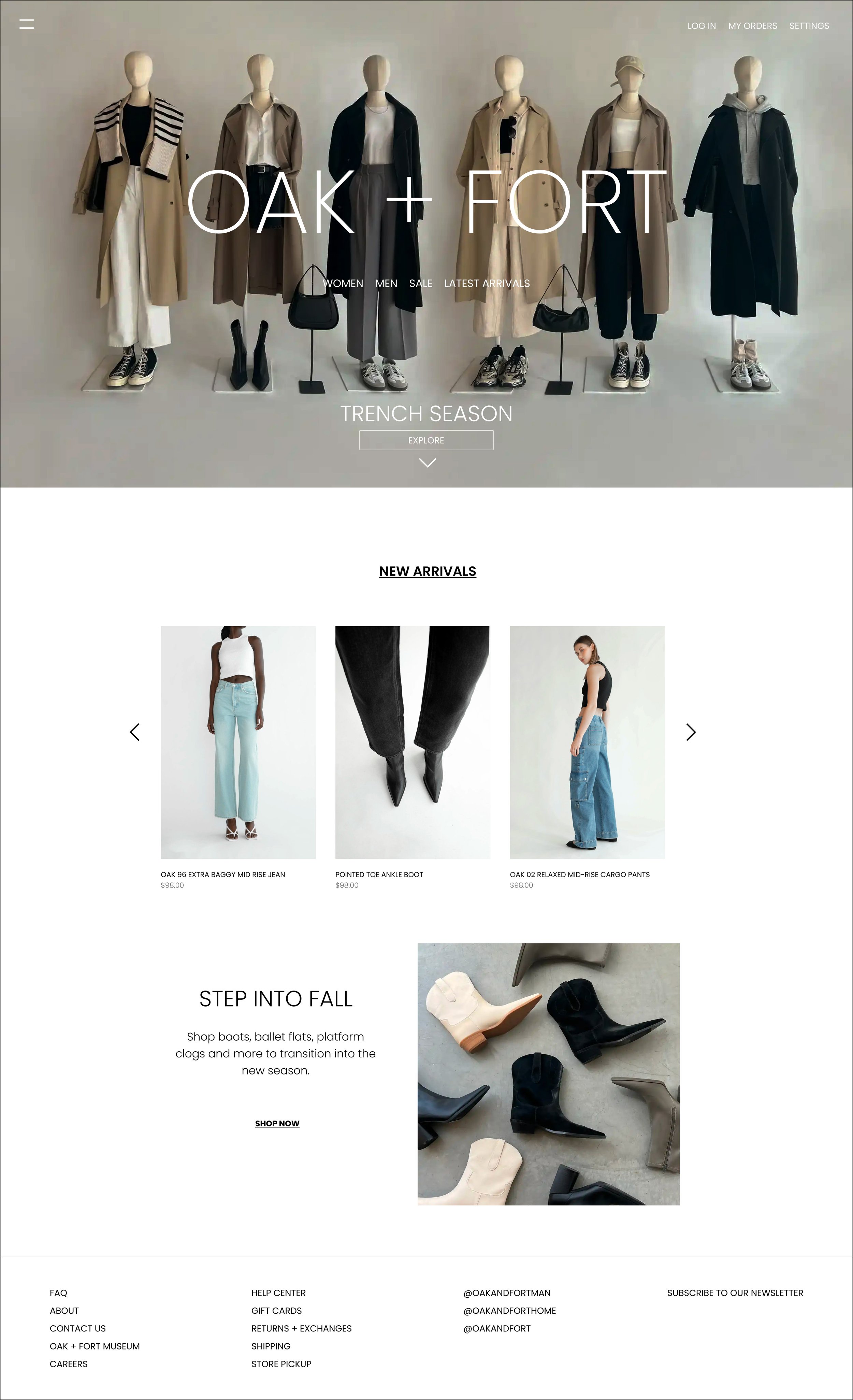Oak + Fort is a fashion brand known for providing affordable, minimalist, luxury fashion. This project was completed in 2023, and is something I took on as a passion project. The goal was to re-design Oak + Fort’s website to better reflect the brand.